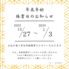 【年末年始休業日のお知らせ】